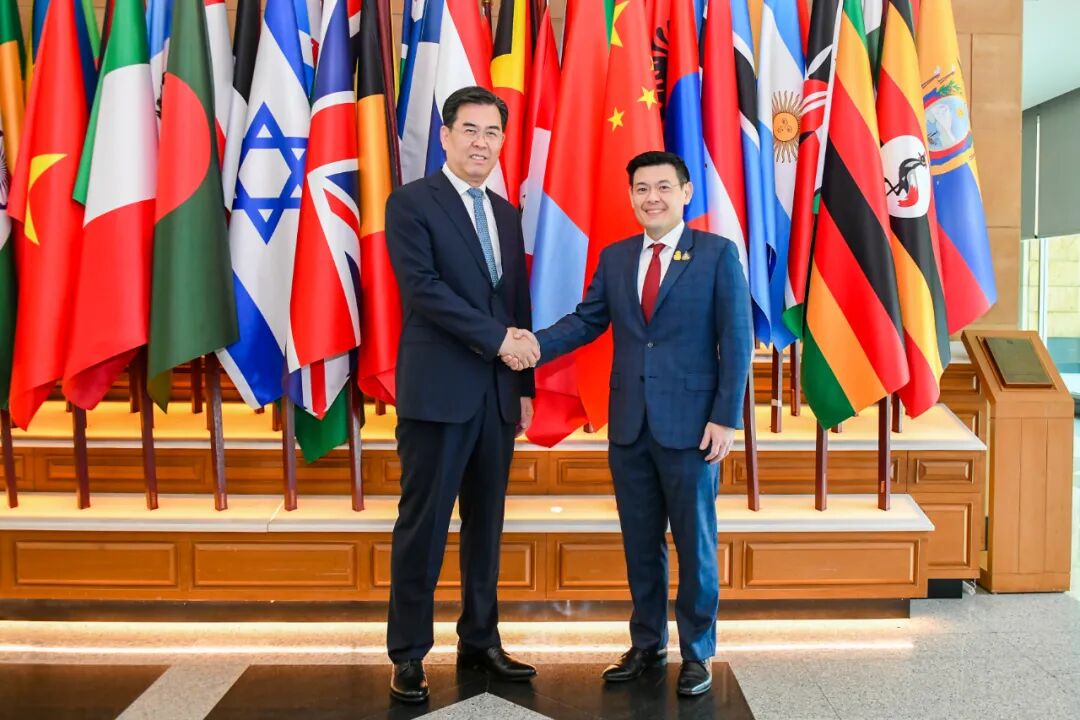 李炳军会见泰国总理府办公室部长扎卡蓬·散玛尼。(图 胡鹏)