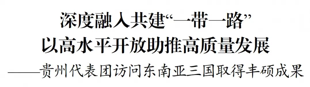 在“一带一路”倡议引领下,贵州代表团此次出访印尼、泰国、老挝,圆满完成了各项任务,释放了坚定不移扩大高水平对外开放的强烈信号,展示了友好交往和共赢发展的良好前景,贵州“朋友圈”越来越大,翻开了与东盟深化交流合作的新篇章。