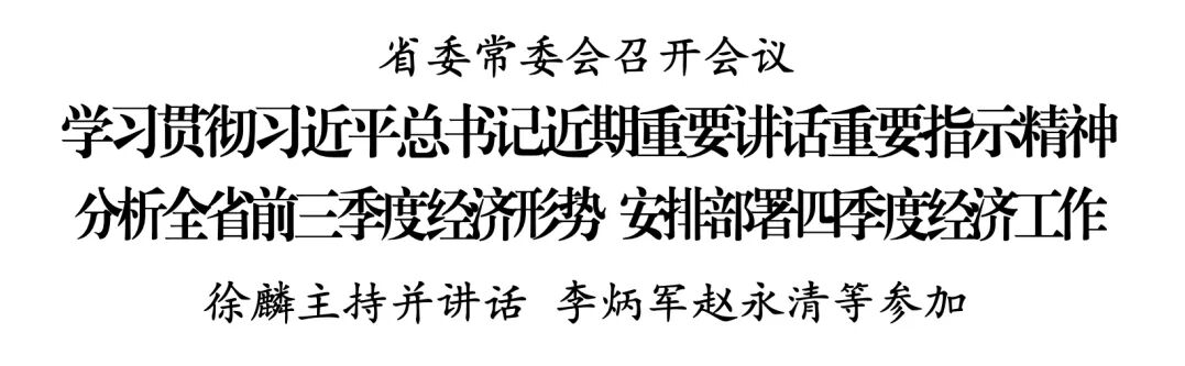 10月25日,省委常委会召开会议,学习贯彻习近平总书记近期重要讲话重要指示精神,分析全省前三季度经济形势,部署四季度经济工作,听取十三届省委第五轮巡视工作情况汇报,研究部署有关工作。