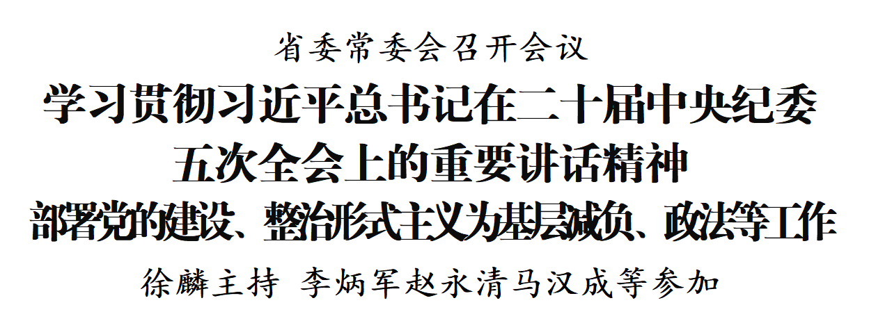 1月25日,省委常委会召开会议,学习贯彻习近平总书记在二十届中央纪委五次全会上的重要讲话精神,学习贯彻全国组织部长会议、中央层面整治形式主义为基层减负专项工作机制会议、中央政法工作会议精神,研究部署巩固拓展脱贫攻坚成果、生态环境保护等工作。